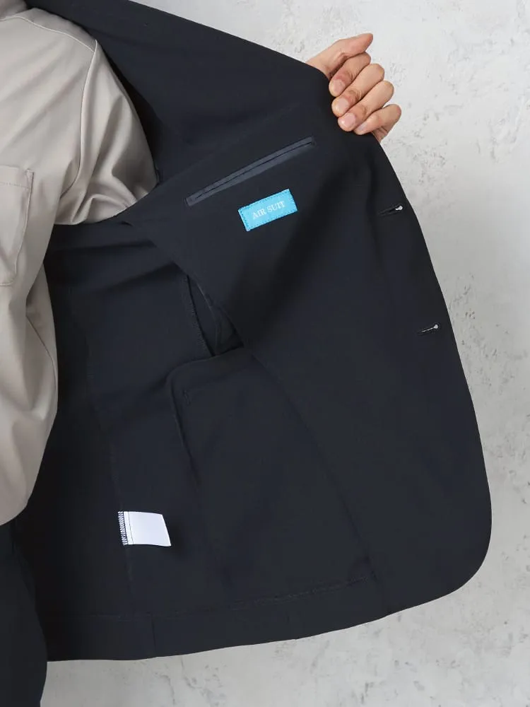 【AIR SUIT】 セットアップ ジャケット 2つボタン 防シワ(イージーケア) ストレッチ 通年 吸汗速乾 UVカット 春夏(ネイビー)