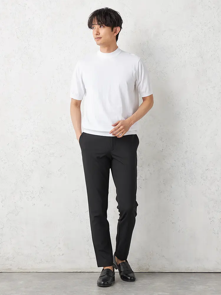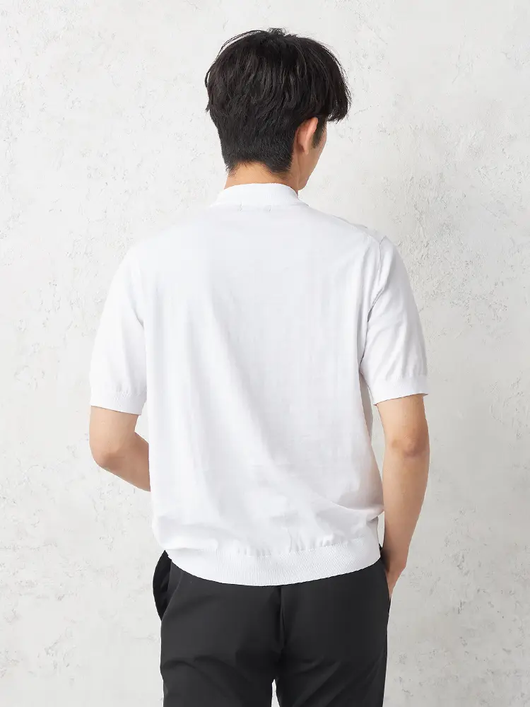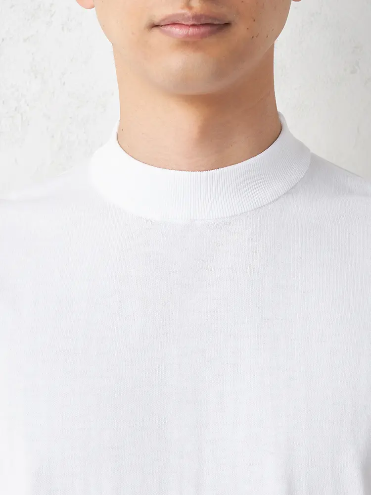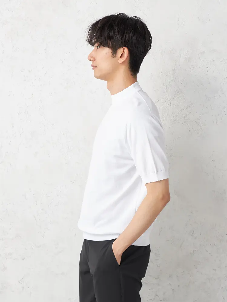 【Rucken Bacchar Black】 モックネックニットTシャツ カジュアルインナー 半袖 リッケンバッカー 冷感 春夏(ホワイト)