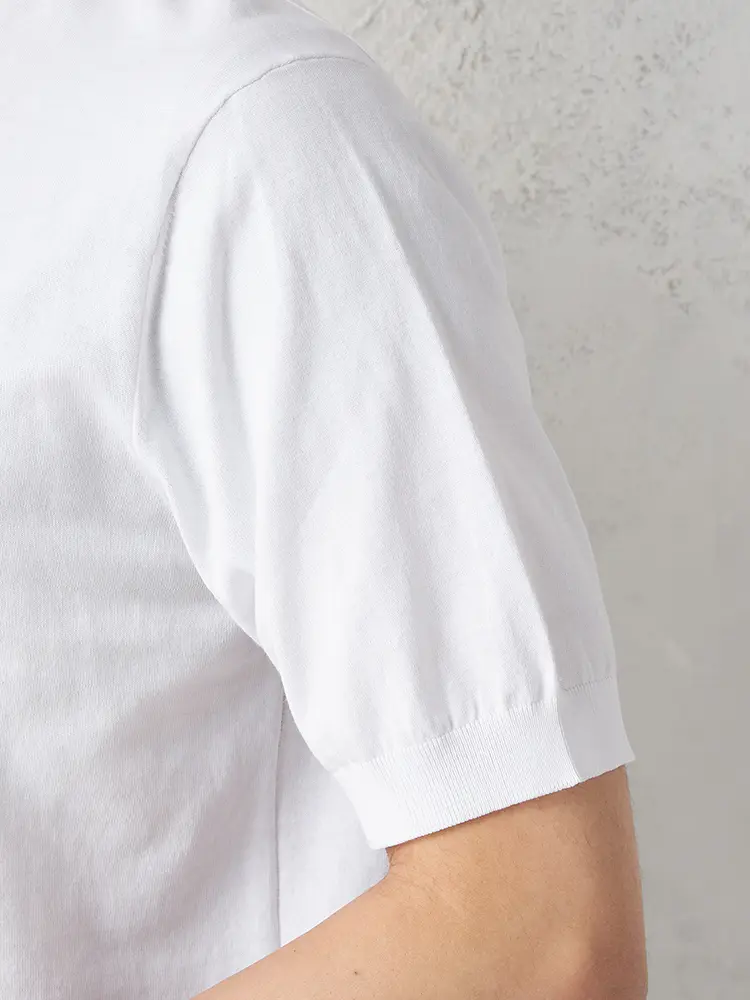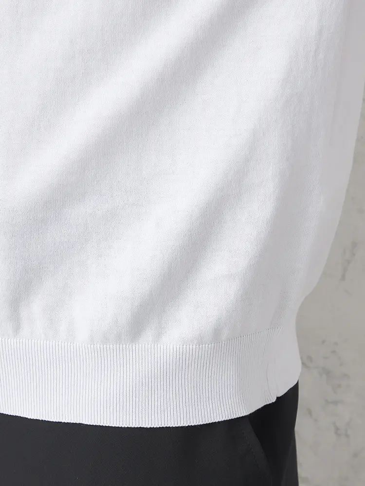肌ざわりの良い綿100%素材を使用し、三子糸で丁寧に編み上げた上質なサマーニットです。