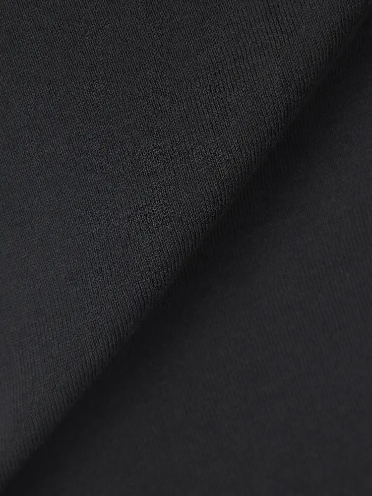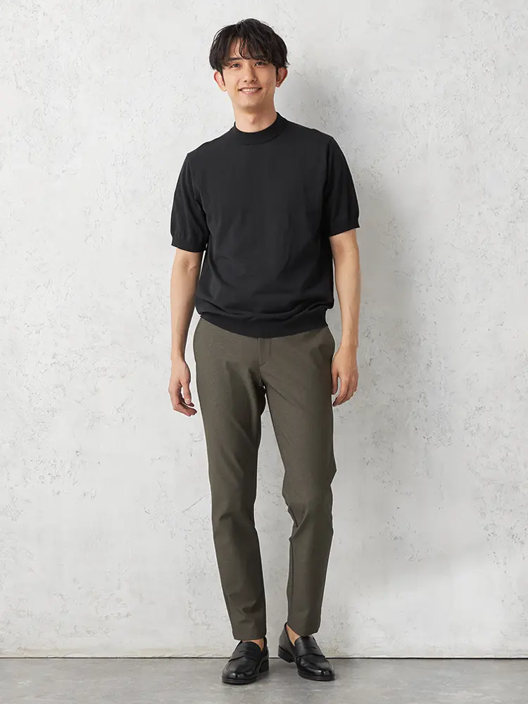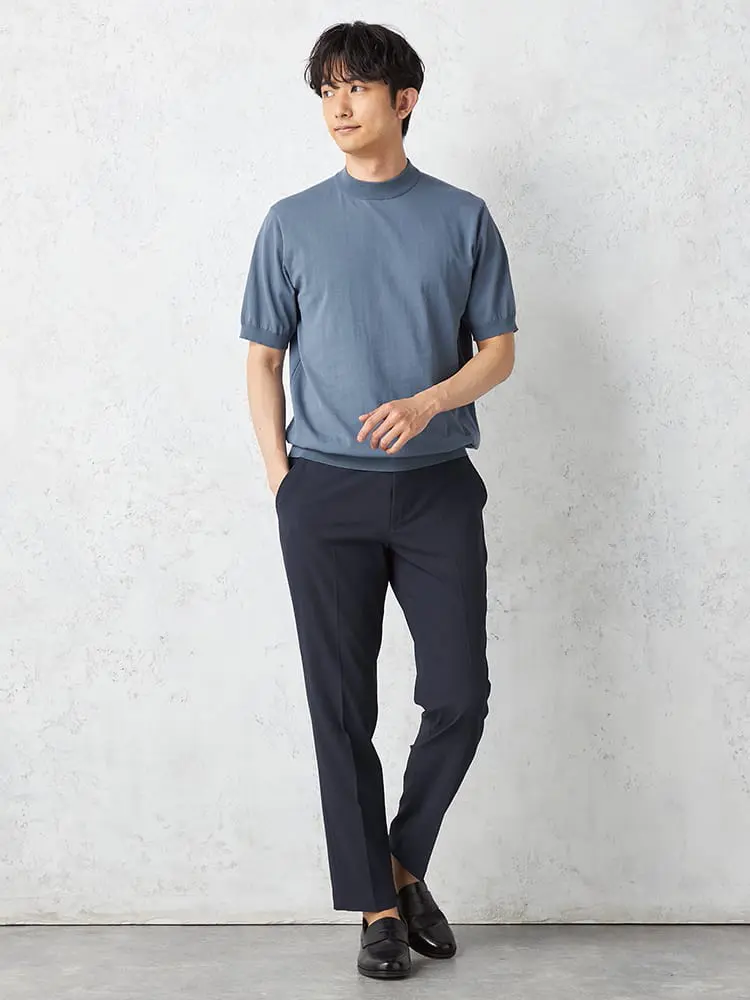 フィット感のあるモックネックと袖口のリブが、上品な表情を演出。