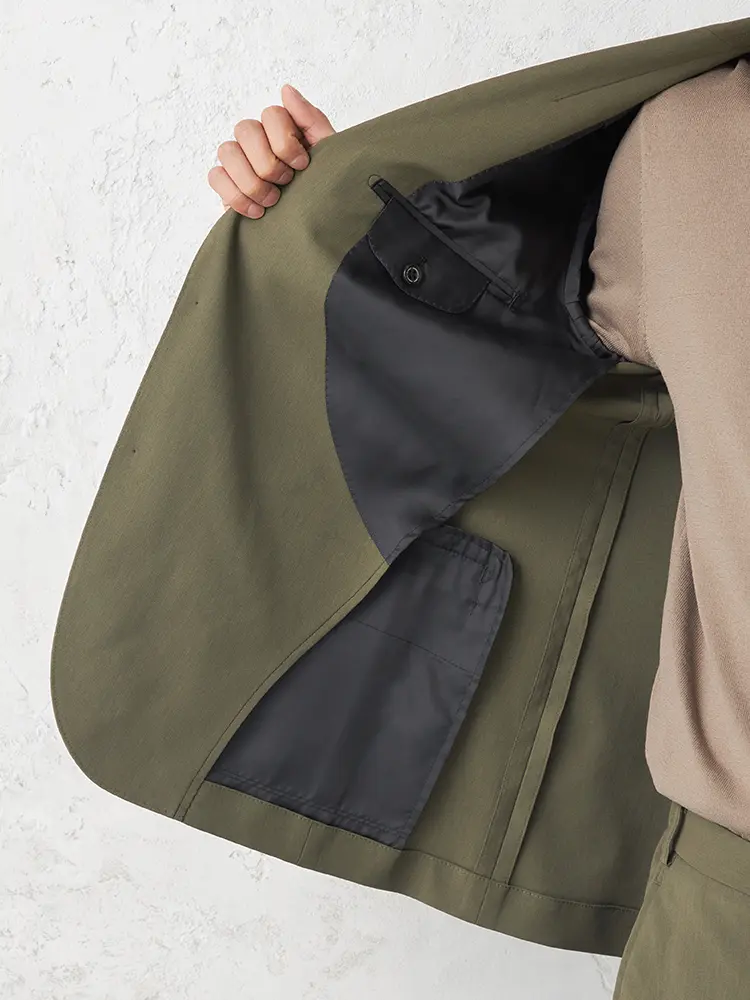 【キャサリン E ハムネット】 コットンライクセットアップジャケット ウォッシャブル ストレッチ 春夏(カーキー)