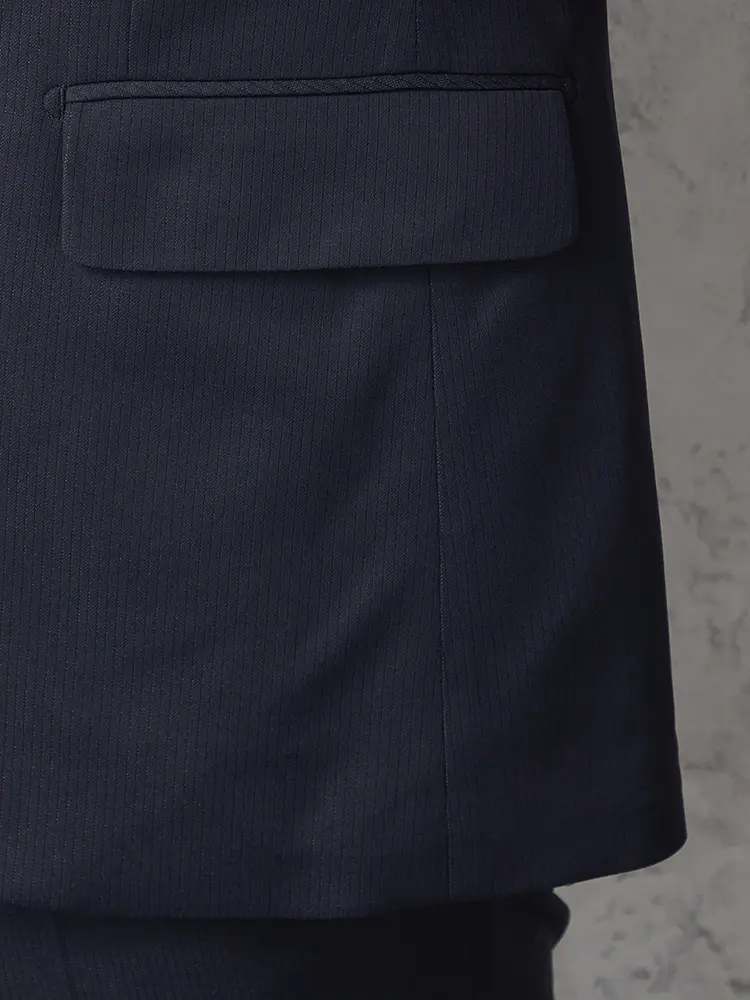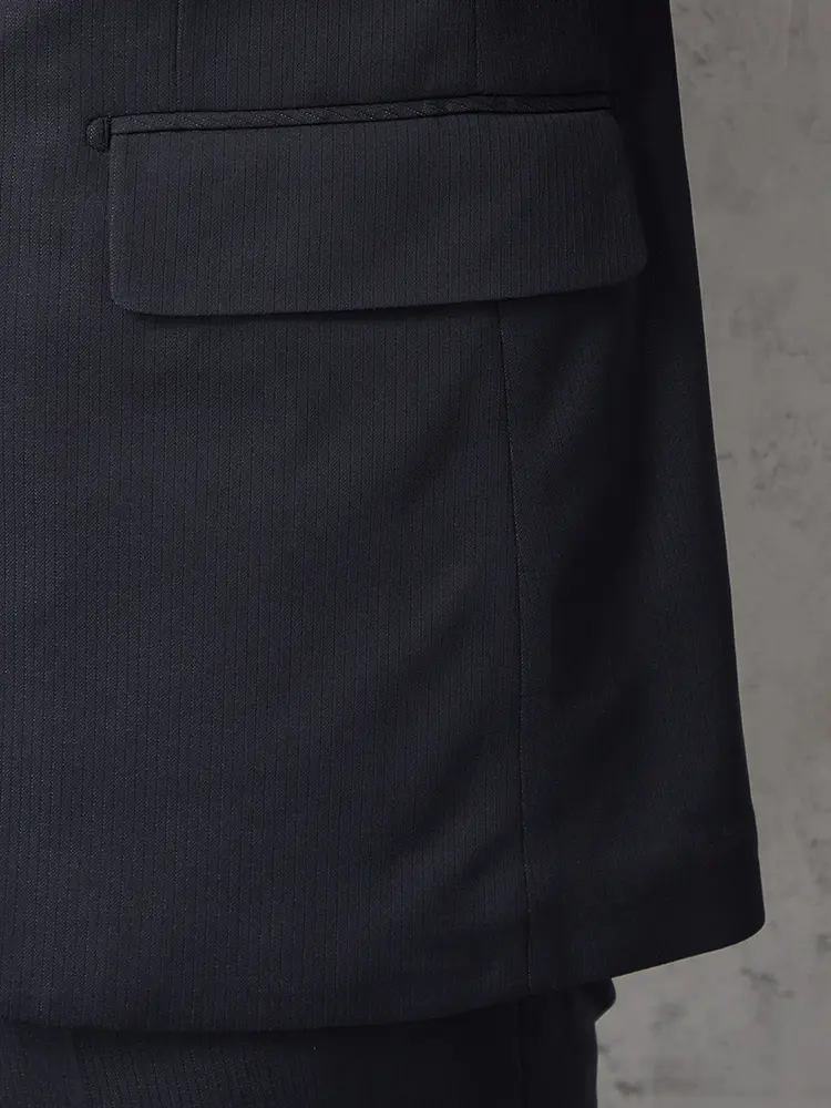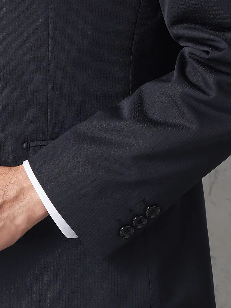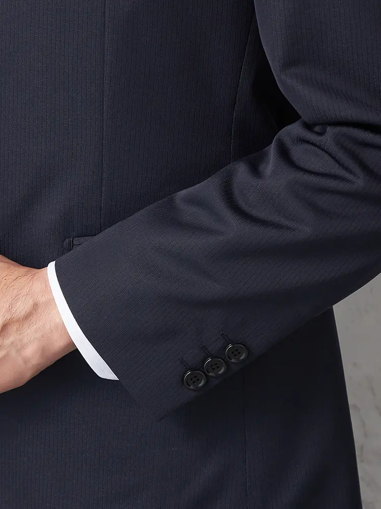 【即納】スーツ2つボタン【WEB限定】上下ウォッシャブルブラックストライプ3シーズン対応