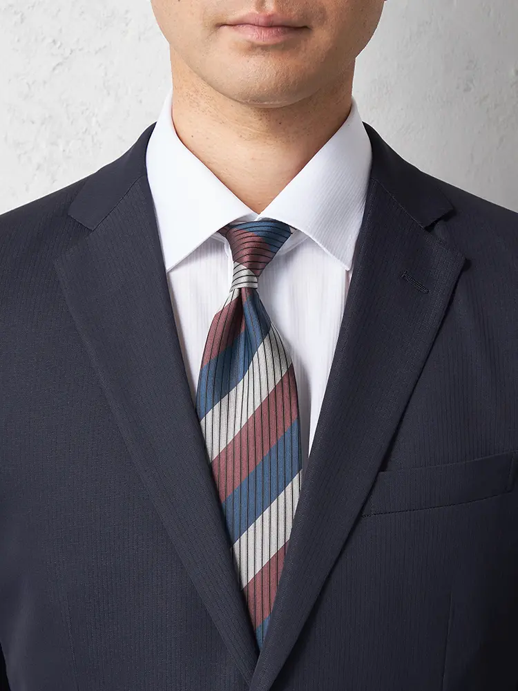 シャドウストライプが洗練された印象を与え、年代問わず着用可能です。