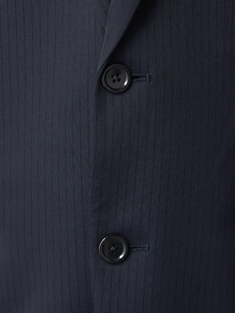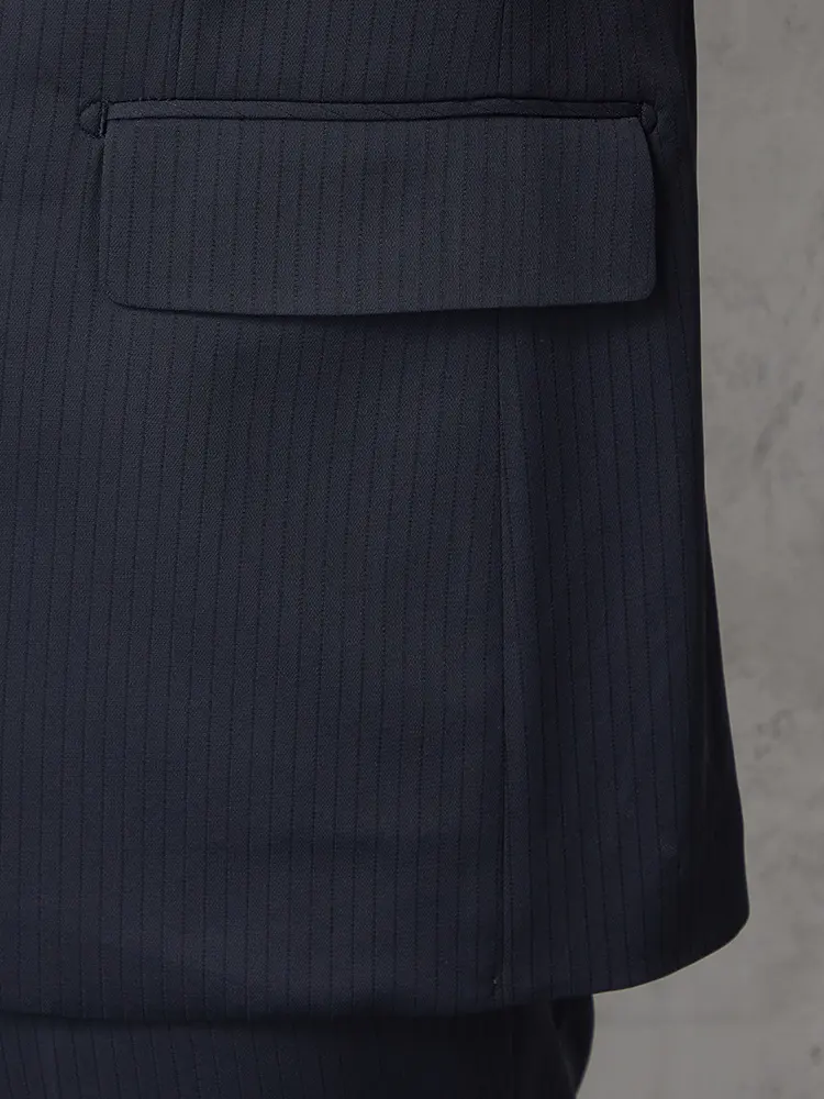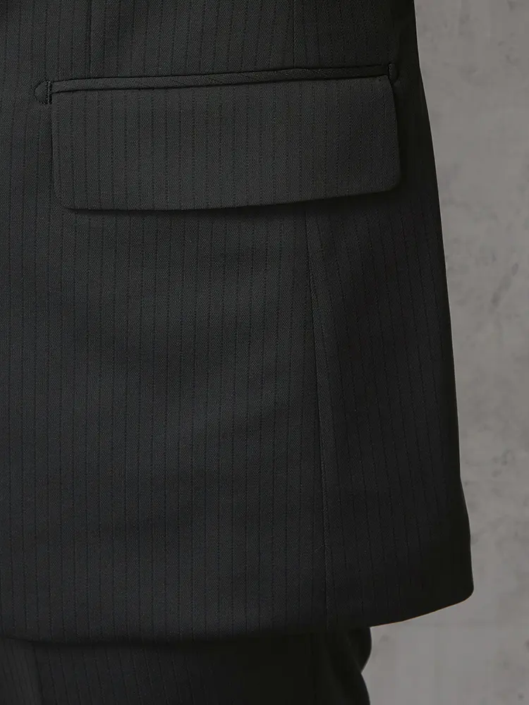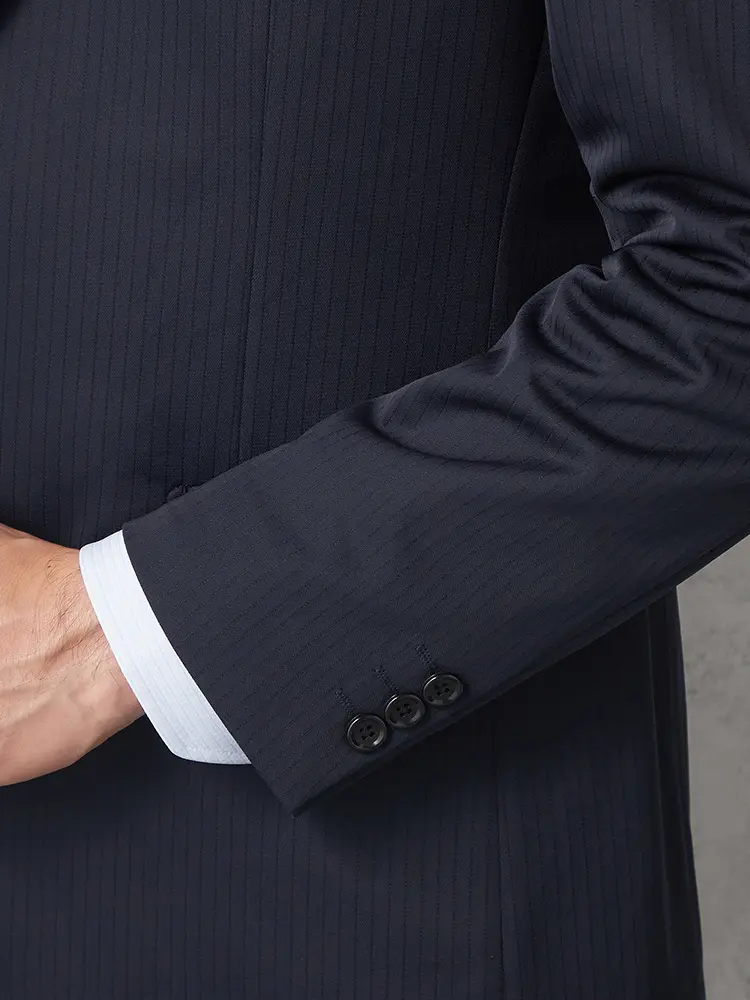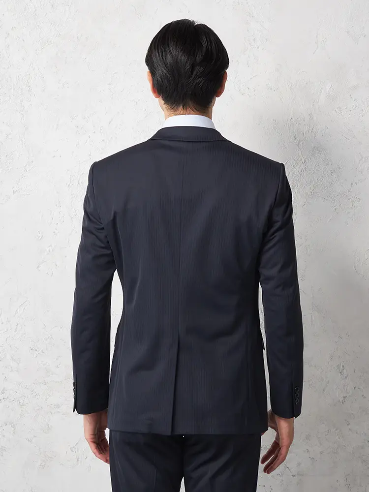 【即納】スーツ2つボタン【WEB限定】上下ウォッシャブルブラックストライプ3シーズン対応