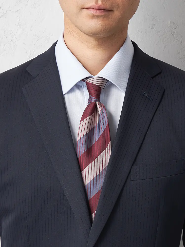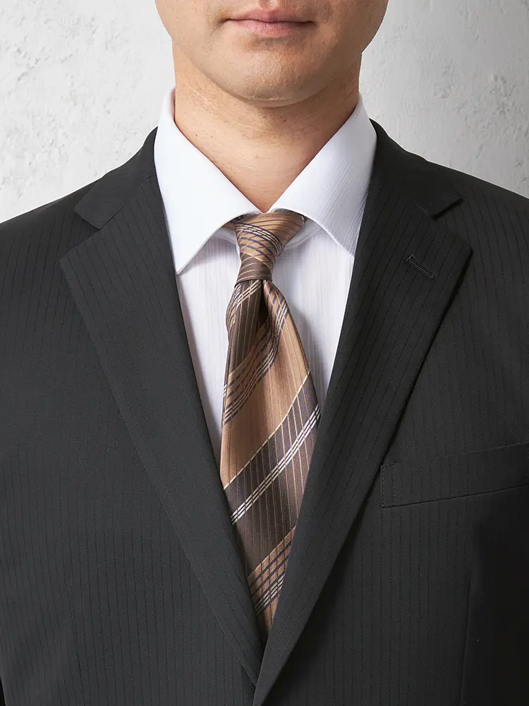 シャドウストライプが洗練された印象を与え、年代問わず着用可能です。