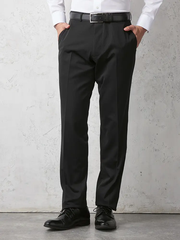 腰回りがすっきりしたノータックの細身シルエットで、常に清潔感のある都会的な着こなしを叶えます。