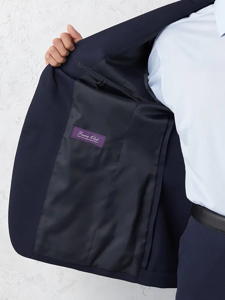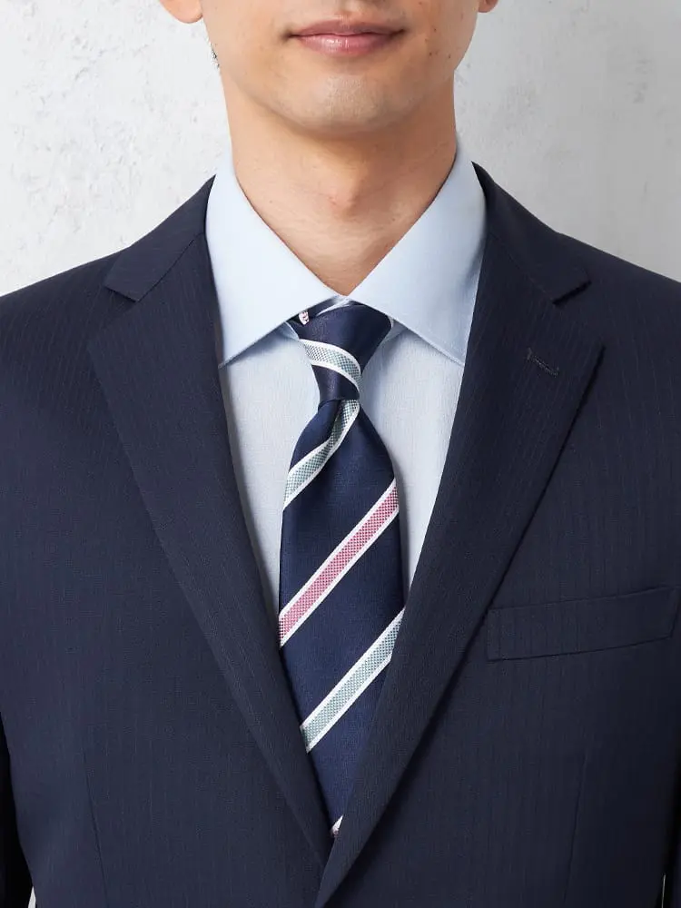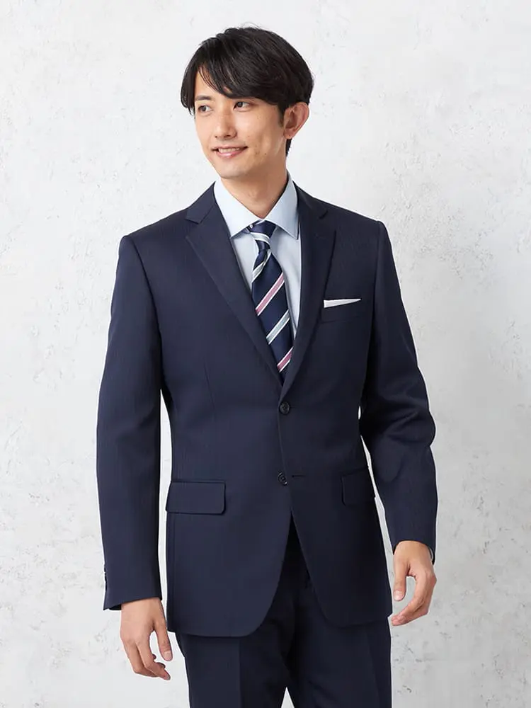 【フュージョンクラブ】 ポリエステル100 スーツ 2つボタン ストライプ ノータック 上下ウォッシャブル 通年(ネイビー)