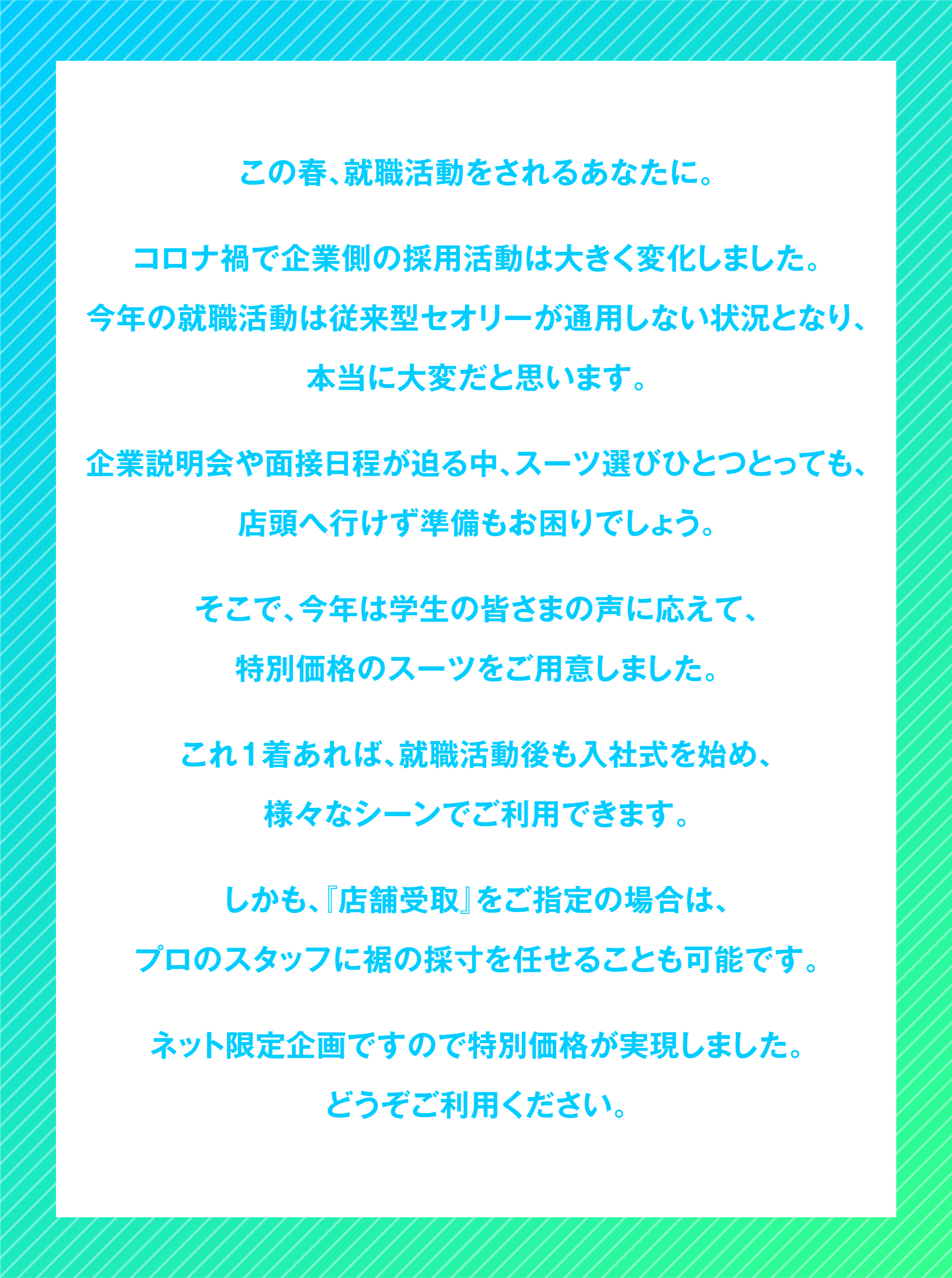スーツをネットで買うのってサイズが不安ですよね。でも、ポイントを押さえたらきちっとフィット。