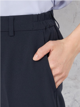 ウエスト脇はゴム仕様のためラクな履き心地♪